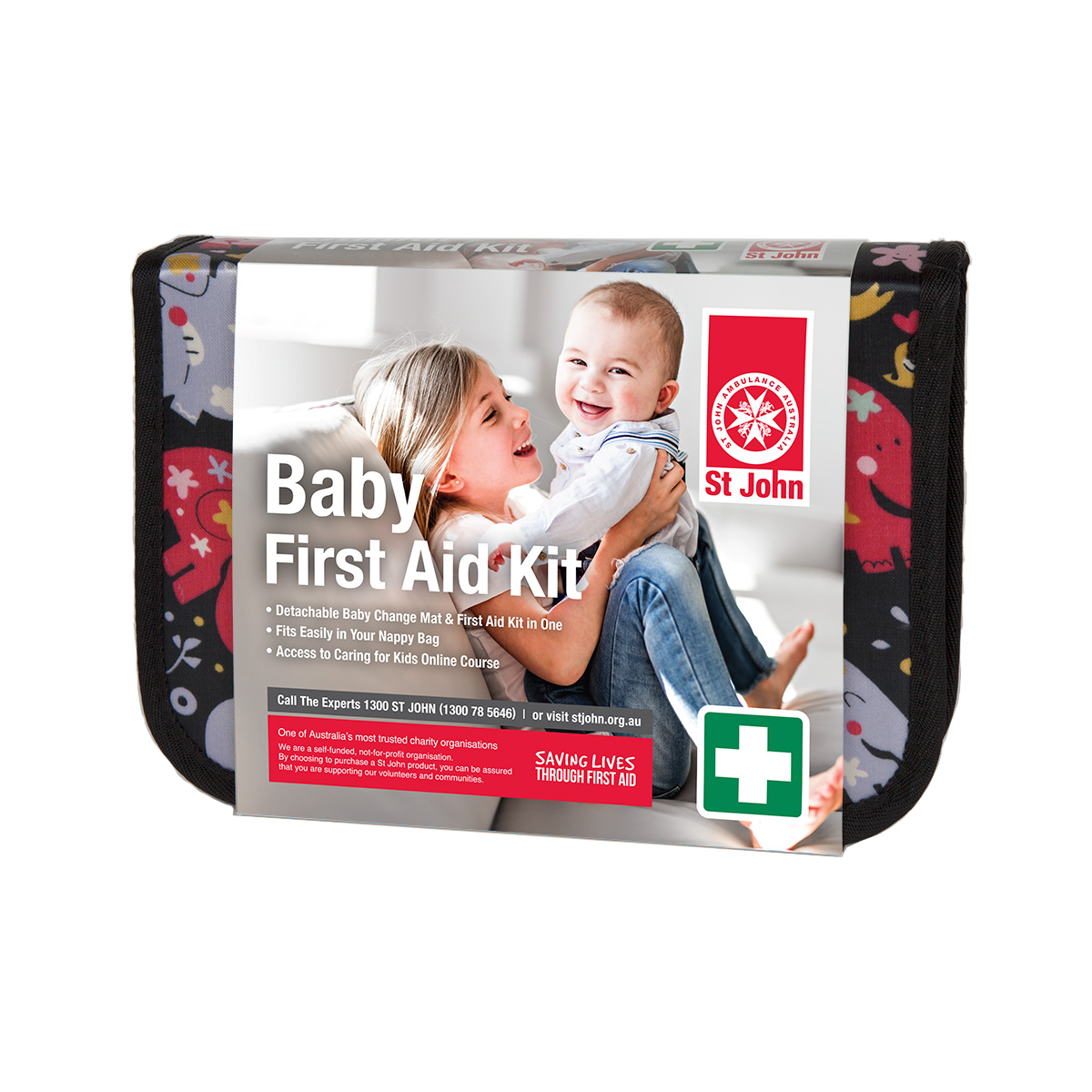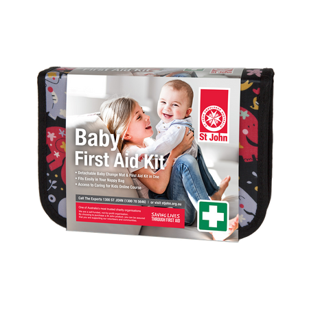 This specially designed Baby First Aid Kit by St. John is perfect for parents on-the-go. Its compact A5 size makes it a convenient addition to your baby bag, and it even includes a detachable change mat for added functionality. Plus, you can access an online course on Caring for kids with this kit.