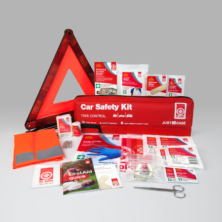 In a motor vehicle accident, you only have minutes to act. The Car Safety Kit has high quality first aid items to treat injuries common to motor vehicles, and useful safety items to ensure you are safe on the road whenever and wherever first aid is needed.