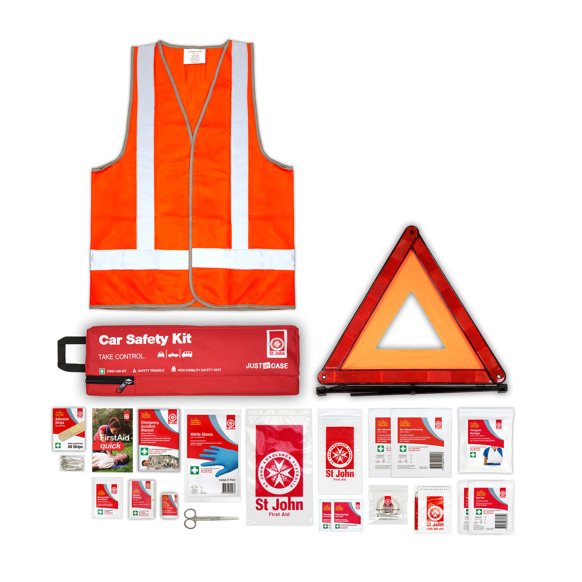 In a motor vehicle accident, you only have minutes to act. The Car Safety Kit has high quality first aid items to treat injuries common to motor vehicles, and useful safety items to ensure you are safe on the road whenever and wherever first aid is needed.