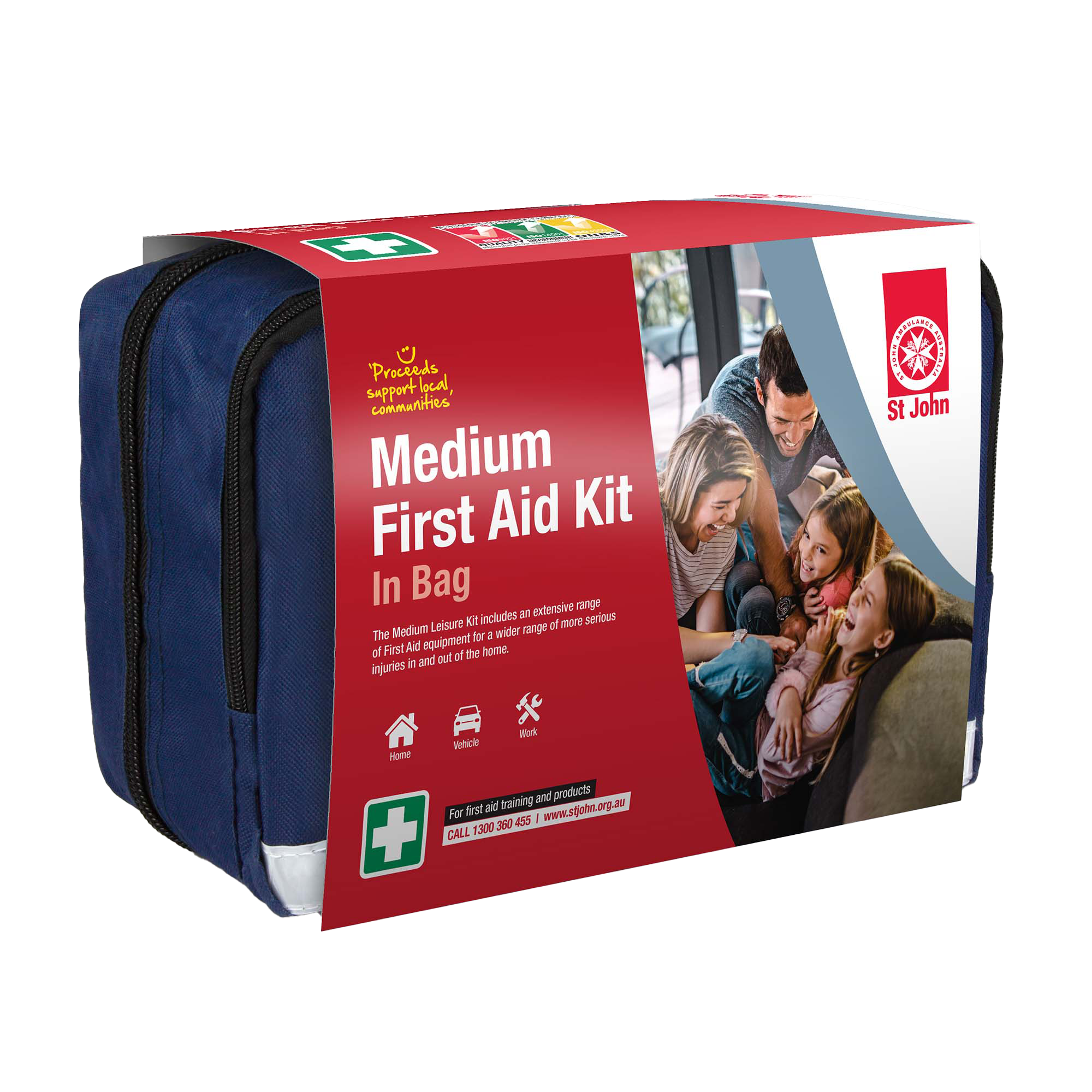 - Comprehensive First Aid supplies in a conveniently organised fold-out bag.