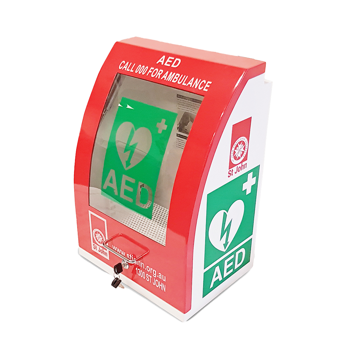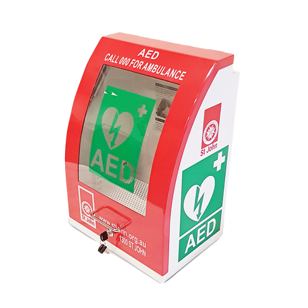 The distinctive curved shape and red door makes it easy to find and with Australian Emergency phone numbers on the door. Add a First Aid and AED signage to direct your staff in times of emergency.