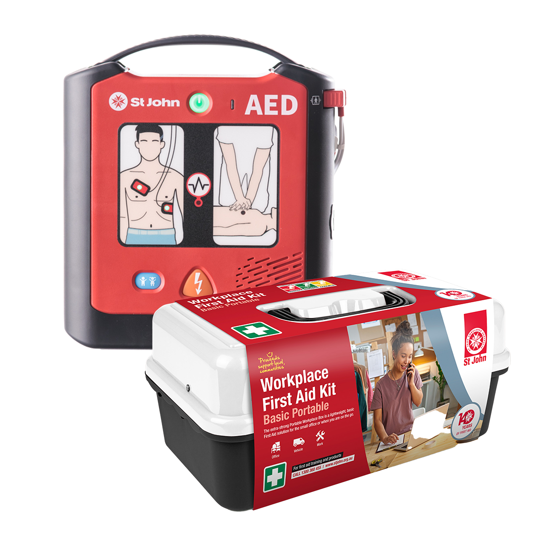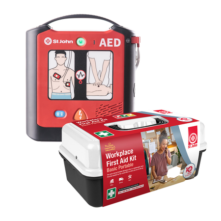 The St John Small Business Safety Bundle delivers comprehensive emergency preparedness in one integrated solution. The X1 Semi-Automatic Defibrillator combines intelligent heart rhythm analysis with dual adult and child modes, supported by clear audio guidance and automatic ECG recording. Its IP55 rating and drop-tested durability ensure reliable performance across diverse workplace environments, while daily self-diagnostics confirm readiness. Paired with the Workplace First Aid Kit Portable—a collection of bandages, dressings, sterile swabs, and emergency supplies—this bundle equips small businesses to respond confidently to sudden cardiac emergencies and common injuries. Compact and transportable, it's designed for offices, mobile teams, and on-site operations.